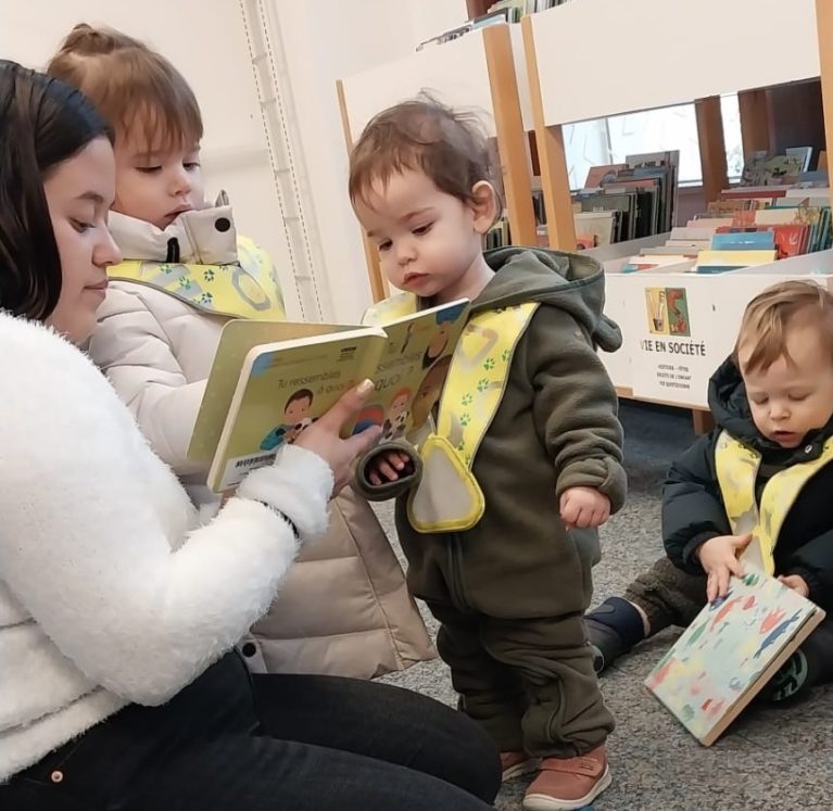 Après ce joli bricolage, ils sont partis avec les Trotteurs à la bibliothèque du CREDE. Au programme : raconter et écouter